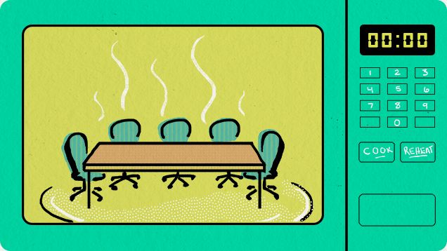 Till the warmed-up oceans rise up and drown us, the office microwave oven will be our greatest everyday illustration of the tragedy of the commons. Everyone's food is a little bit gross, and in the aggregate, the communal microwave is irredeemably foul. A splash here, a drip there, the accumulated vapors of dozens of unrelated foodstuffs, most of them heated thoughtlessly and destructively—there is no smell quite like that smell, no stickiness quite like that stickiness.