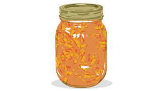 I looked up a number of recipes, judging each based on how few steps they demanded, and landed on a hybrid of this one at One Hundred Dollars a Month and this instructional guide to canning at the Ball canning-jar company's website.