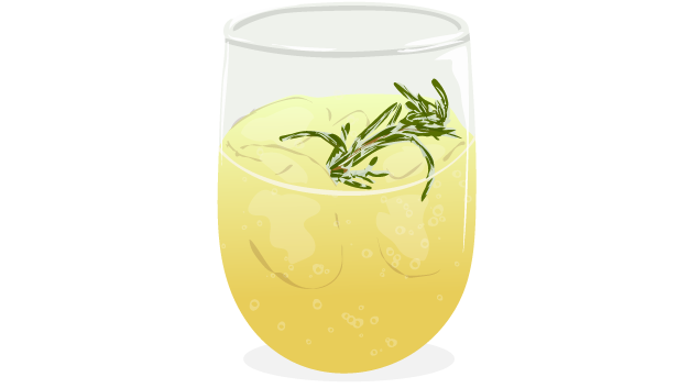 This drink is very good with fancy crackers and nuts though cheese can be pushing it. Be conservative about garnishing the drinks with more sprigs of rosemary; if they're too long it just gets in the way of your mouth and up your nose and it's not that attractive.